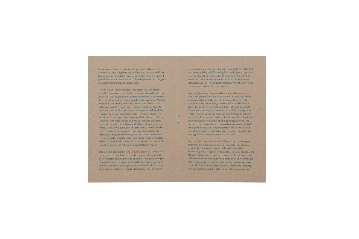 A black and white poster with a cinermatic image of cigarette burn holes on an old armchair is printed over with The Ashtray Show West in mottled white text. Ninety-two ashtrays are lined up on shelves spreading into the floor. Some are from personal collections or bespoke pieces, sentimental, symbolic, rude or idiosyncratic, displayed opposite a collection of delicate jewelry. Both ashtrays and jewelry are universally recognisable forms of adornment that connect to notions of monopoly, materiality and trade.
