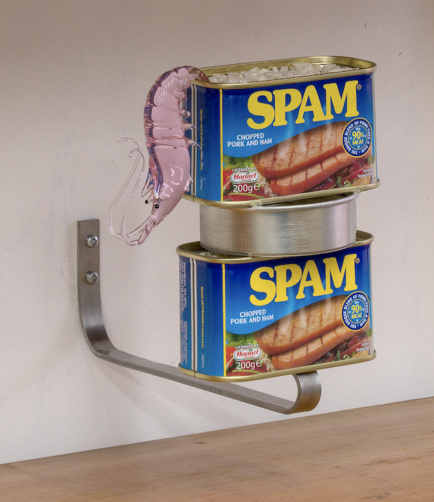 Pay for Your Pleasure (2019)Bait, foam, found object, key, locker, mild steel, plaster, print, plywood, vinyl